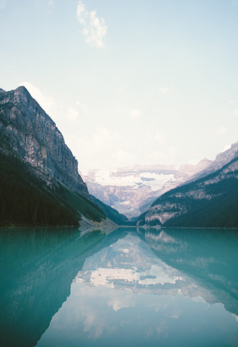 The image features a serene mountain lake surrounded by a lush forest. The lake is situated in a valley, with a majestic mountain range in the background. The scene is captured in black and white, giving it a timeless and classic feel. There are several trees surrounding the lake, with some closer to the water and others further away. The overall atmosphere of the scene is tranquil and picturesque, evoking a sense of peace and natural beauty.